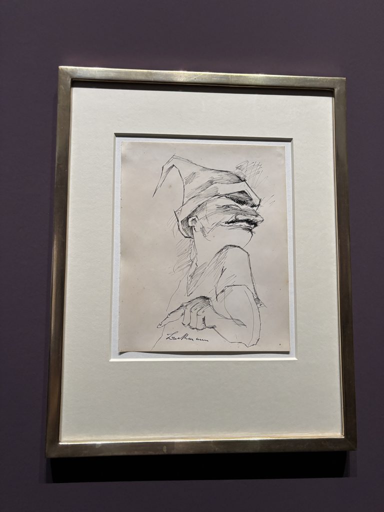 この表情が気になります。会場では、いろいろな角度から見て楽しむことができました。カラーの絵もあり、色の組み合わせが素敵でした。混んでいたので、もう一度、平日にゆっくり見に行く予定です。