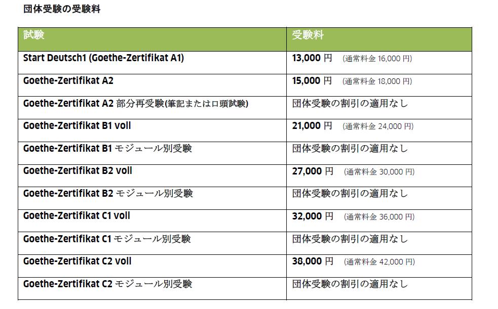 2026年(秋まで)の試験日は以下のPDFで確認してください。(2026年4月に更新しました。最新情報はゲーテインスティテュートのHPで確認してください。)